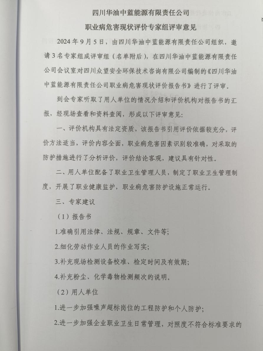 四川華油中藍(lán)能源有限責(zé)任公司職業(yè)病危害現(xiàn)狀評(píng)價(jià) |